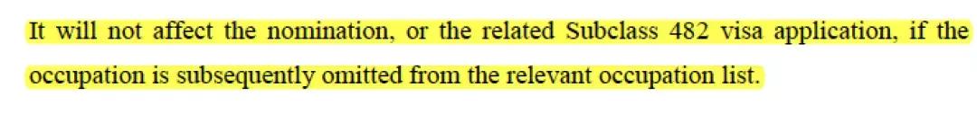 1. 对于已经递交雇主担保申请(nomination)和签证申请(visa)的人来说,将不受新的职业清单的影响。